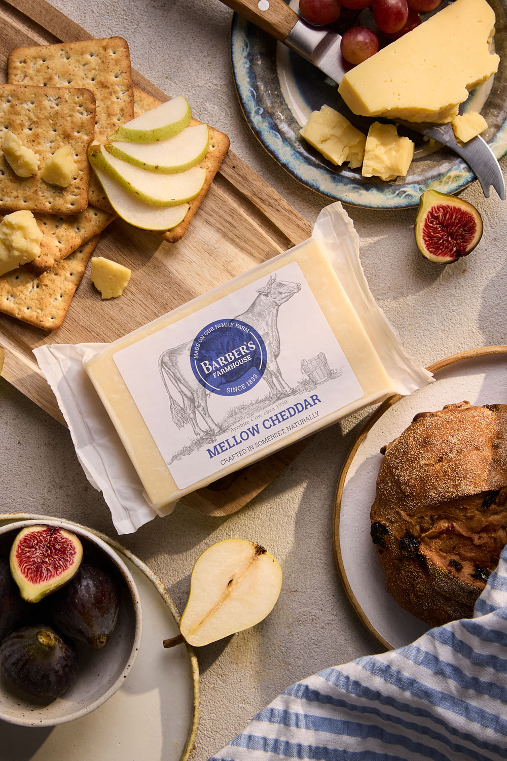 Made with traditional starter cultures, West Country milk and using age-old methods. Typically matured for just four months, our Mellow Cheddar has a mild but tasty finish. A versatile cheese, it’s equally at home in sandwiches, pasta bakes or on crackers with chutney.