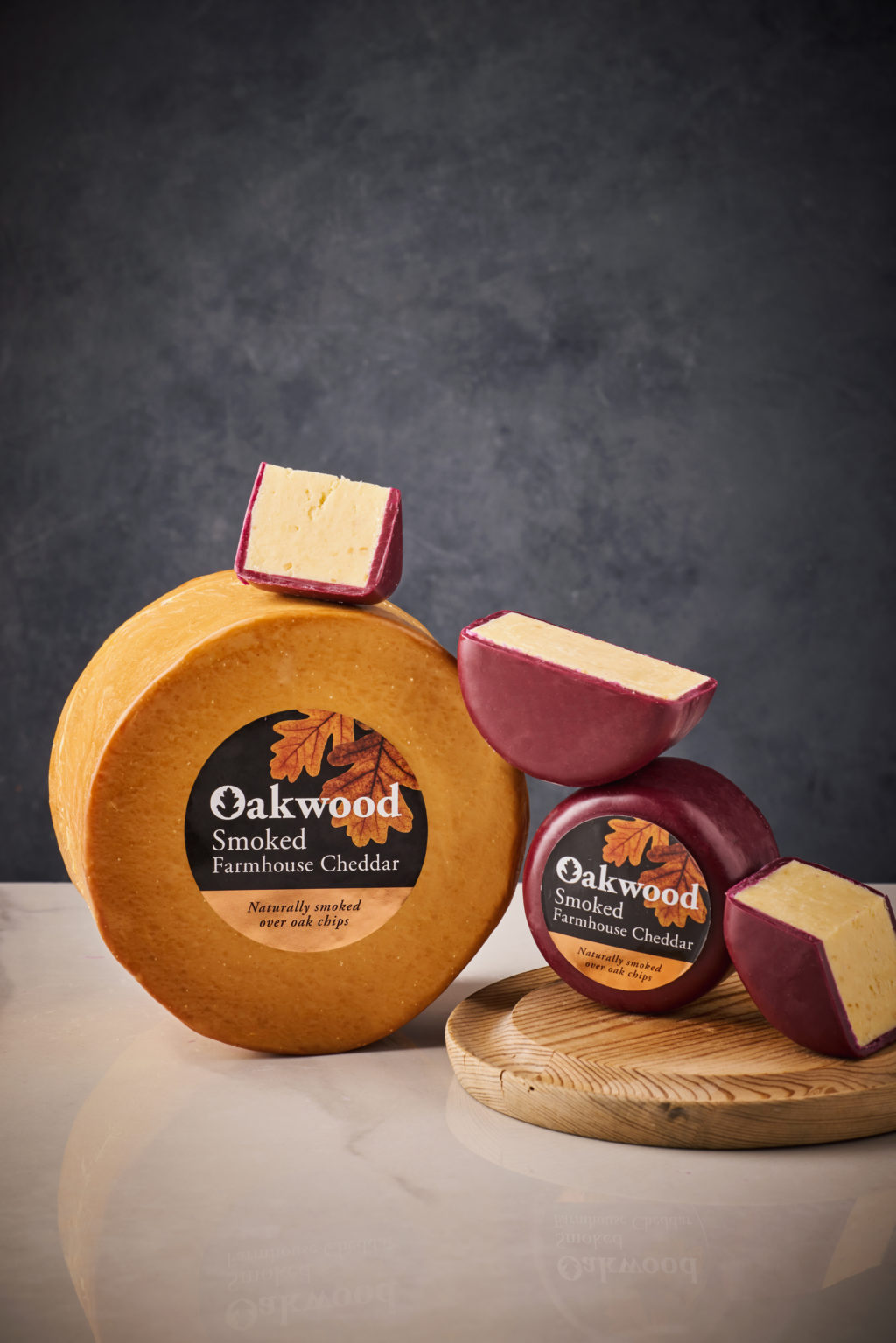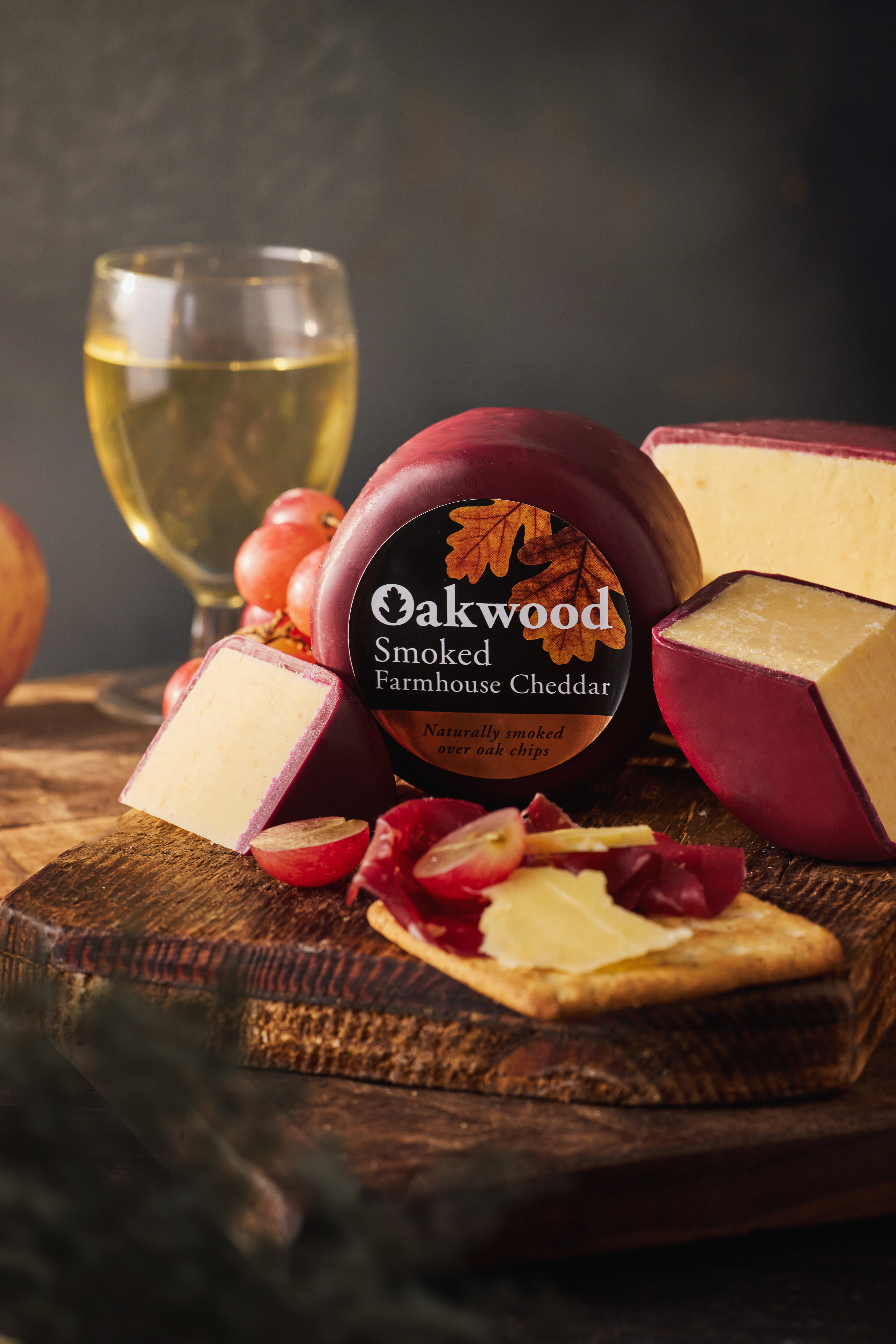 Take a 12 month matured Ford Farm PDO West Country Farmhouse Cheddar Truckle, smoke it over oak chips for several hours, and the result is our smoulderingly delicious Oakwood range of smoked cheddars.