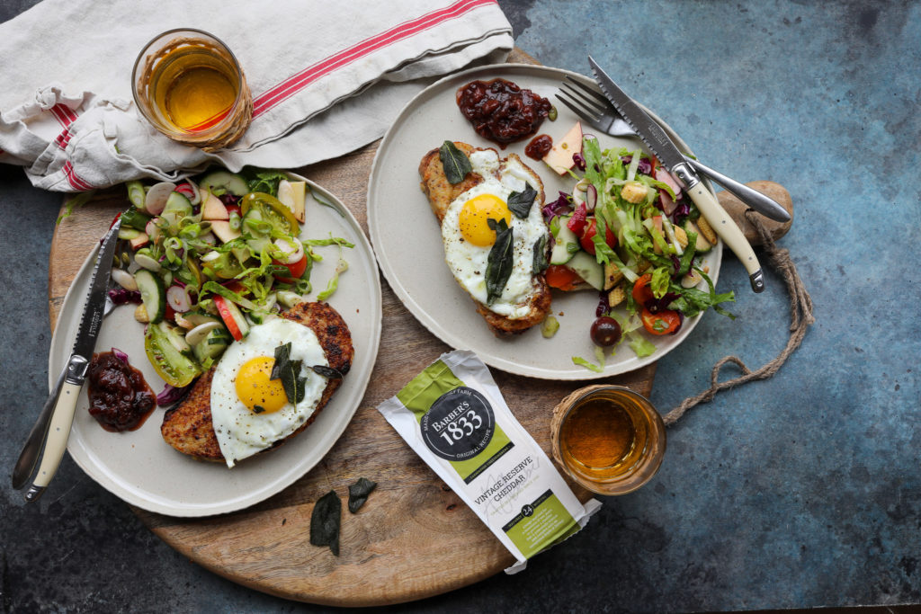 Barber’s 1833 Vintage Cheddar Croque Madame, cider cheese sauce, chutney on toasted sourdough, and of course that golden fried egg on top. Rich, tangy, and totally indulgent.